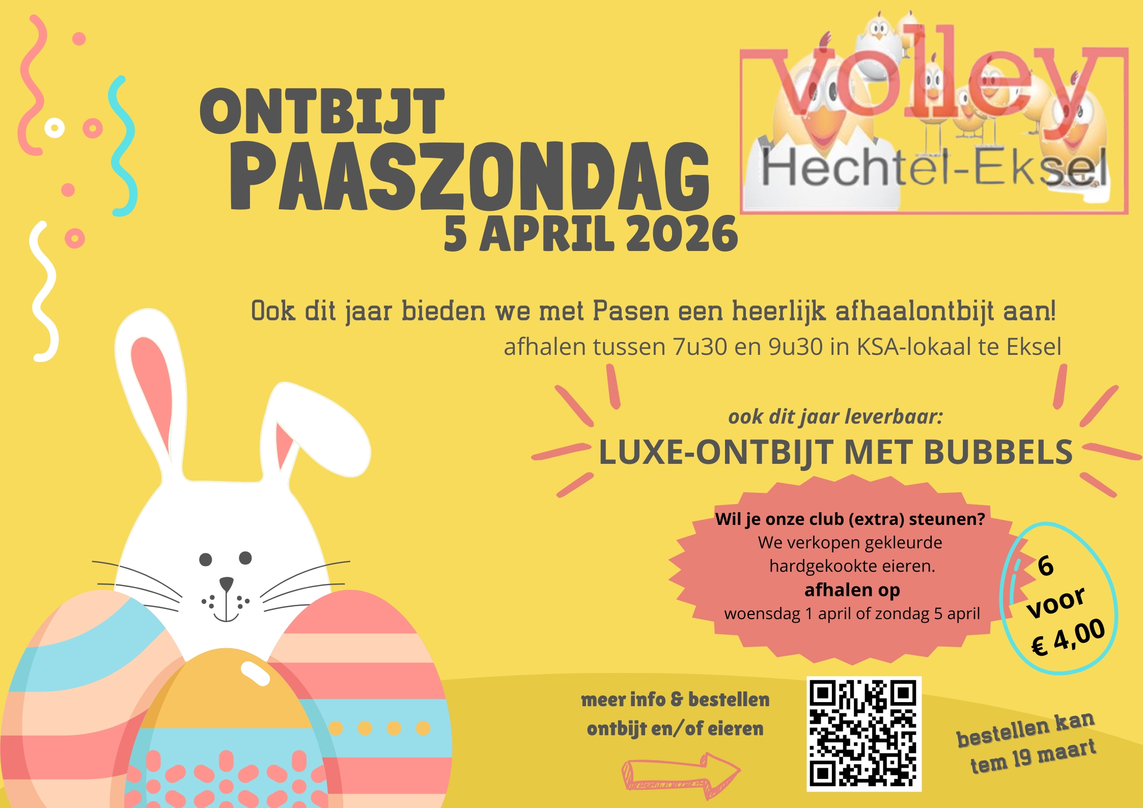 Jouw favoriete volleybalclub steunen en zelf heerlijk kunnen genieten van een kant-en-klaar ontbijt met Pasen. Klinkt goed, toch?